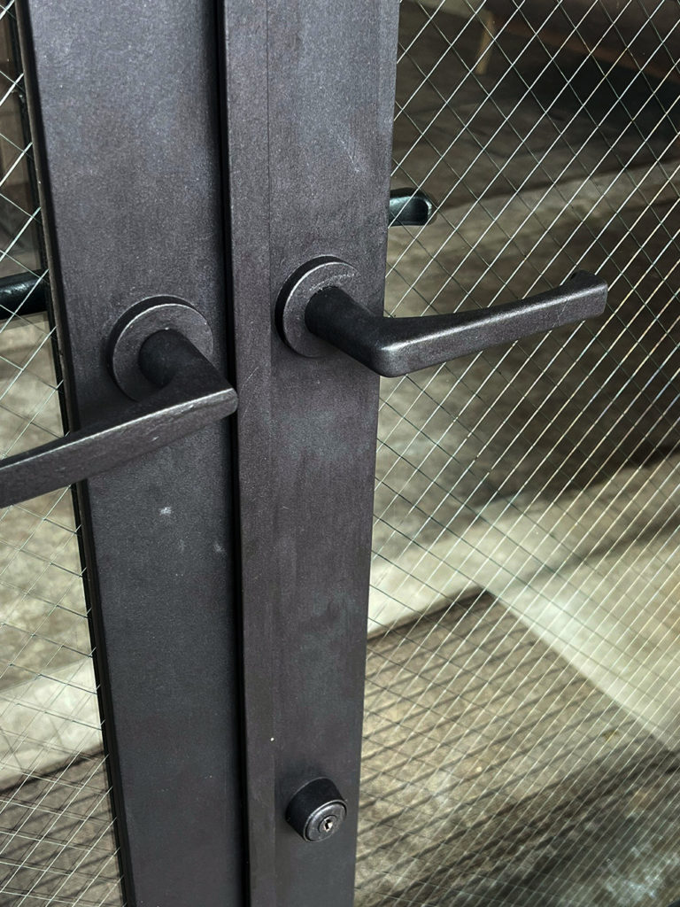 その温もりに寄り添うように、エントランスの黒いアイアンが空間をキリリと引き締めます。